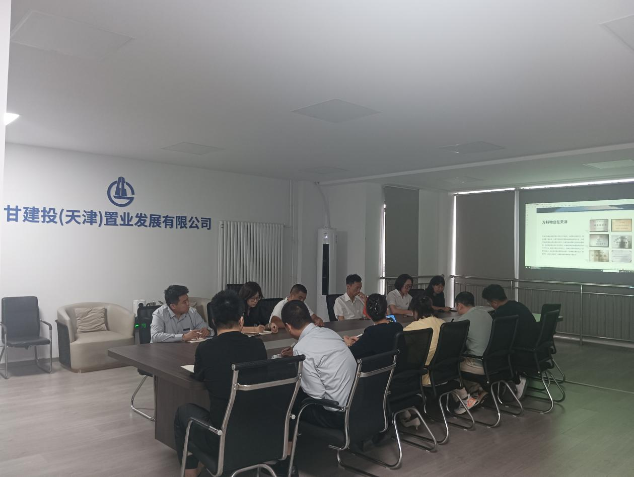 9月5日下午,为推动党建与生产经营深度融合,以高质量党建助推服务升级和业务拓展。同时,立足甘肃建投“走出去”战略要求,积极借鉴如万科物业等优秀企业的先进经验,拓宽视野、主动对标,为省外项目高质量发展注入新动能。天津置业公司组织开展“万科物业服务特色及服务优势”主题营销业务培训,培训以现场方式进行,项目营销部、工程部全体员工参加。